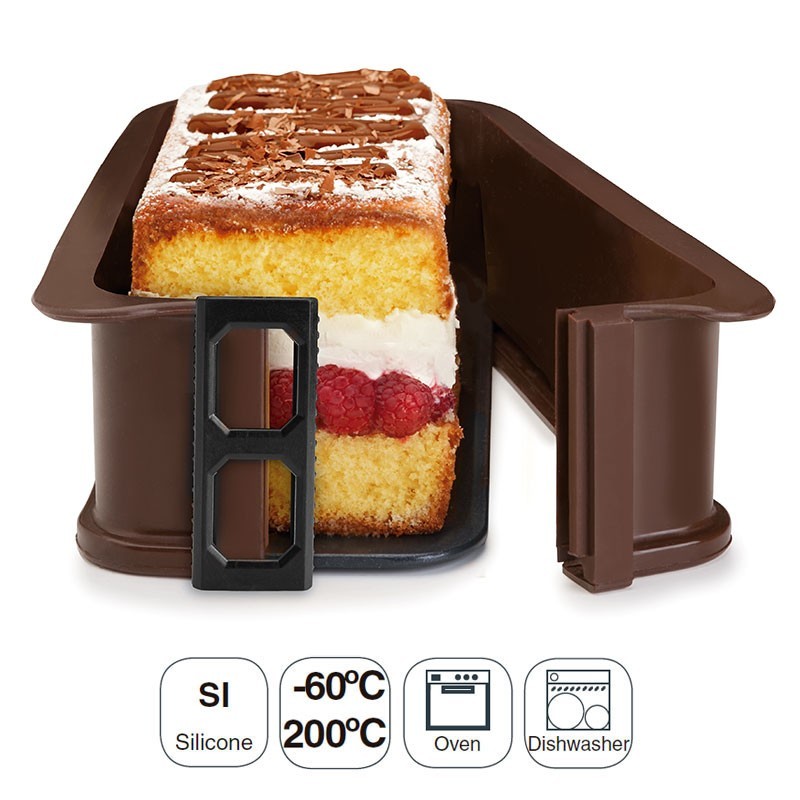 Molde desmontable para repostería de 29x13 cm y 7 cm de alto fabricado en silicona con base de cristal antiadherente y antirralladuras.