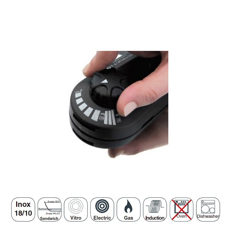 Su válvula nos permite regular la presión de cocción desde 0 a 0,9 bares.