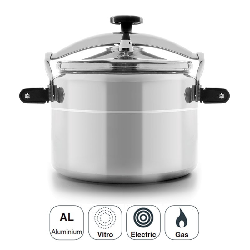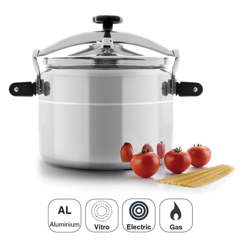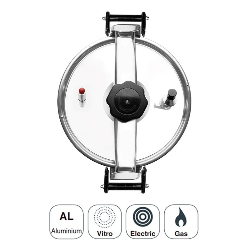 Olla a presión profesional modelo Pro Classic fabricada en aluminio puro apto para cocinas de gas, eléctricas y vitrocerámicas.