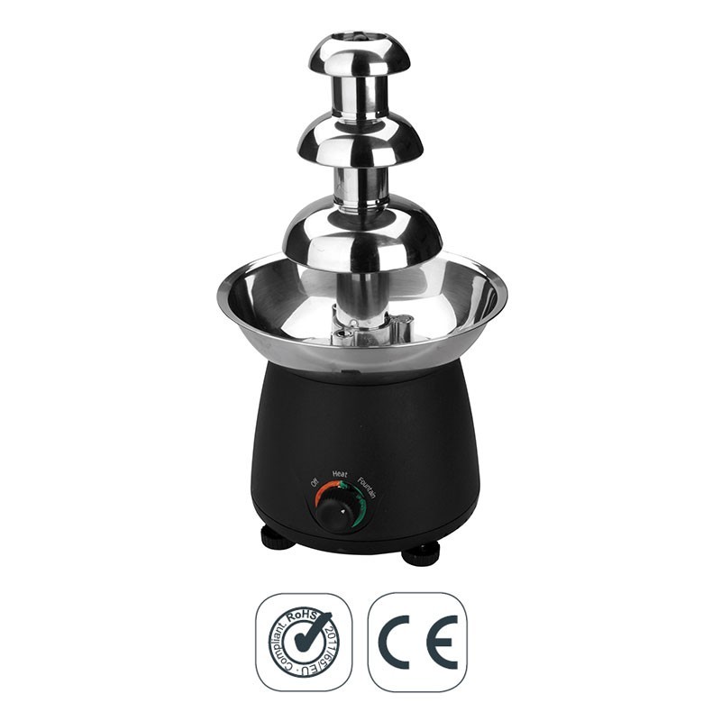 Fuente eléctrica de chocolate fundido fabricada en acero inoxidable de gran calidad y base de ABS. Disponible en 2 tamaños.