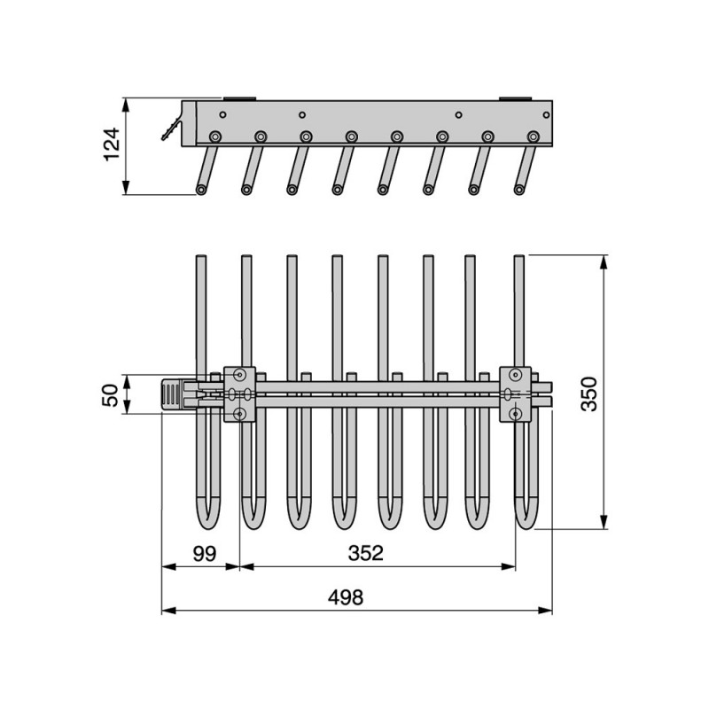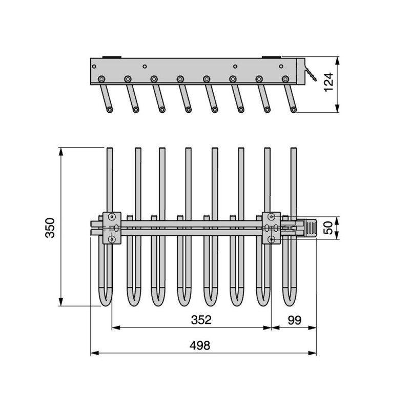 El pantalonero extraíble Self permite organizar de forma eficiente el espacio en el interior de armarios y vestidores, facilitando el acceso a las prendas. Está fabricado en acero con acabado pintado aluminio y plástico gris, y dispone de guías de 450 mm con extracción total. Incorpora un tirador en la parte frontal para facilitar la extracción del mecanismo.