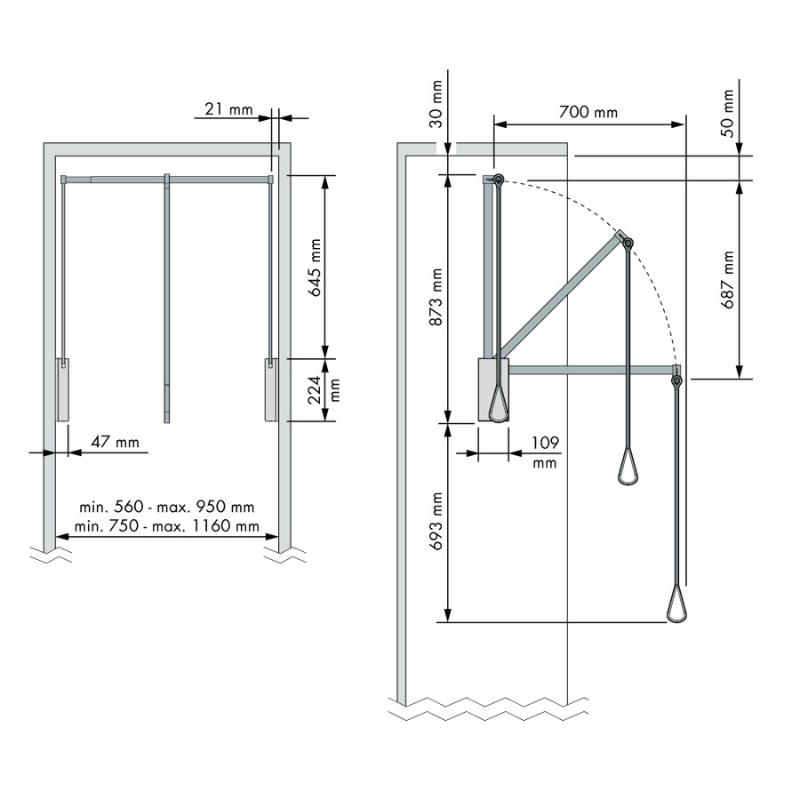 Con una altura de 873 mm y una profundidad de 109 mm, se adapta a diversas configuraciones de armario. Además, puedes visualizar el producto en 360º y descargar los planos técnicos y de montaje desde la página oficial.