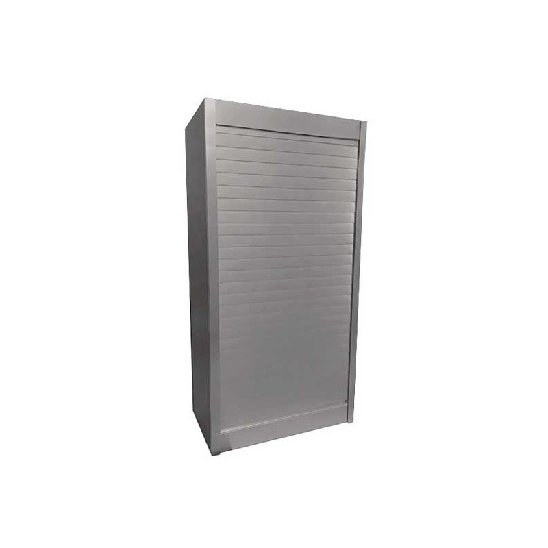 Persiana en kit fabricada en aluminio con lama de 40 mm acabado acero cepillado con tirador integrado para instalar en muebles de cocina.