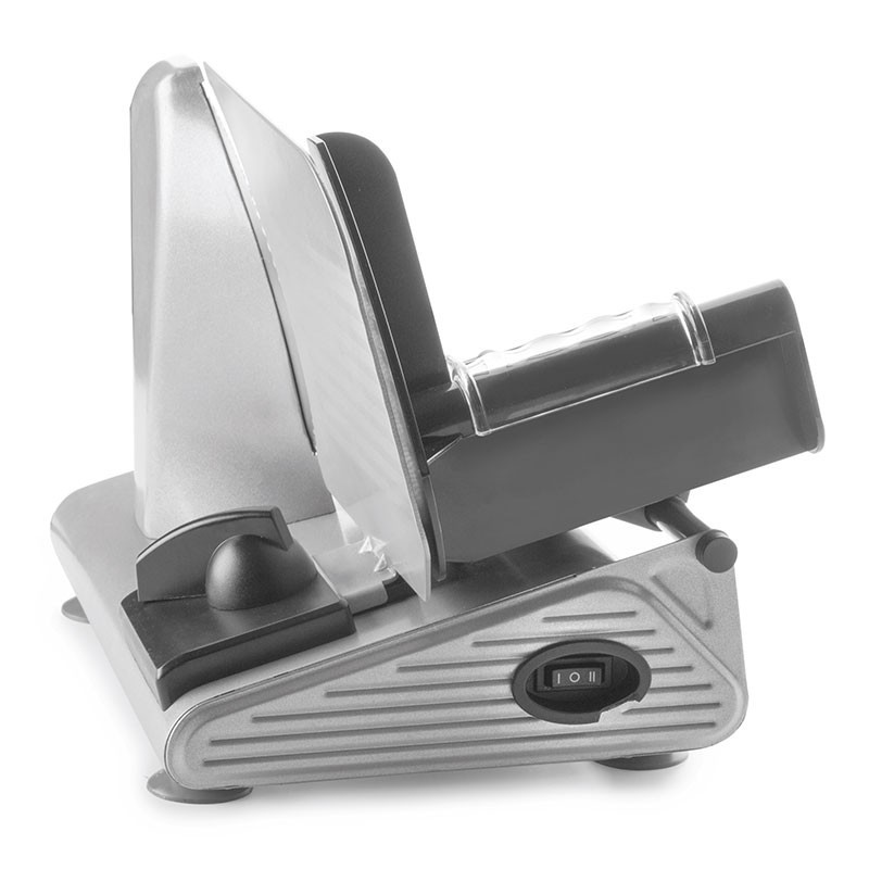 Cortadora de fiambre eléctrica modelo Home de 150 W fabricada en acero inoxidable 18/10 con disco de corte de 190 mm.