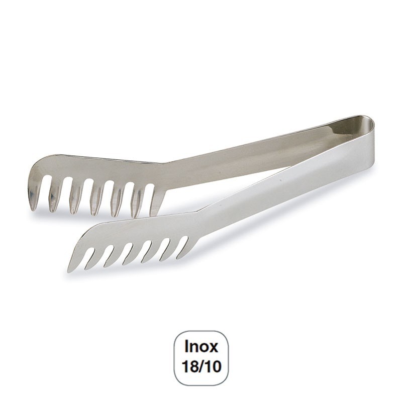 Pinza de 19 cm de largo para servir pastas fabricada en acero inoxidable de gran calidad y resistencia a la corrosión.