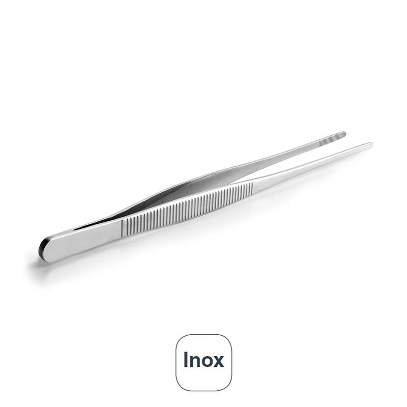 Pinza de precisión recta para cocina fabricada en acero inoxidable. Ideal para ayudarte a decorar tus platos. Disponible en 2 tamaños.
