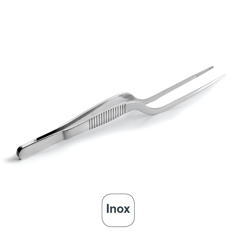 Pinza de 16 cm para cocina ideal para emplatar. Fabricada en acero inoxidable de gran calidad y excelente resistencia a la corrosión.
