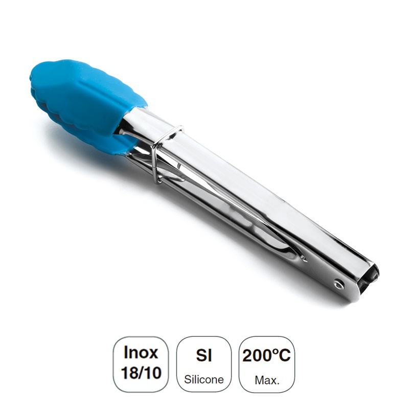 Pinza de silicona de 18 cm de largo con mango de acero inoxidable. Ideal para cocinar o para repostería. Disponible en 5 colores diferentes.