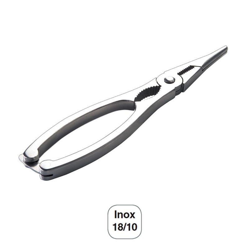 Tijera - tenaza de 18,5 cm especial para cortar, abrir y partir mariscos, fabricada en acero inoxidable de gran calidad y resistencia a la corrosión.