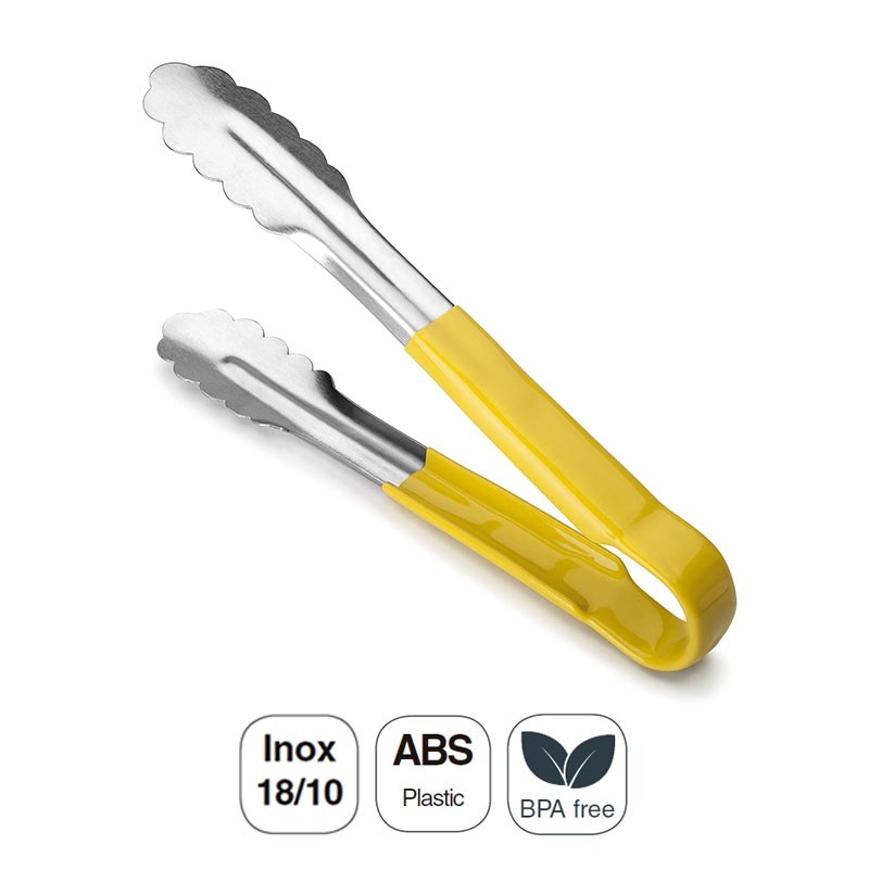 Pinza de 24 cm de largo para cocina o para repostería fabricada en acero inoxidable 18/10 con revestimiento térmico en ABS. Disponible en 6 colores diferentes.