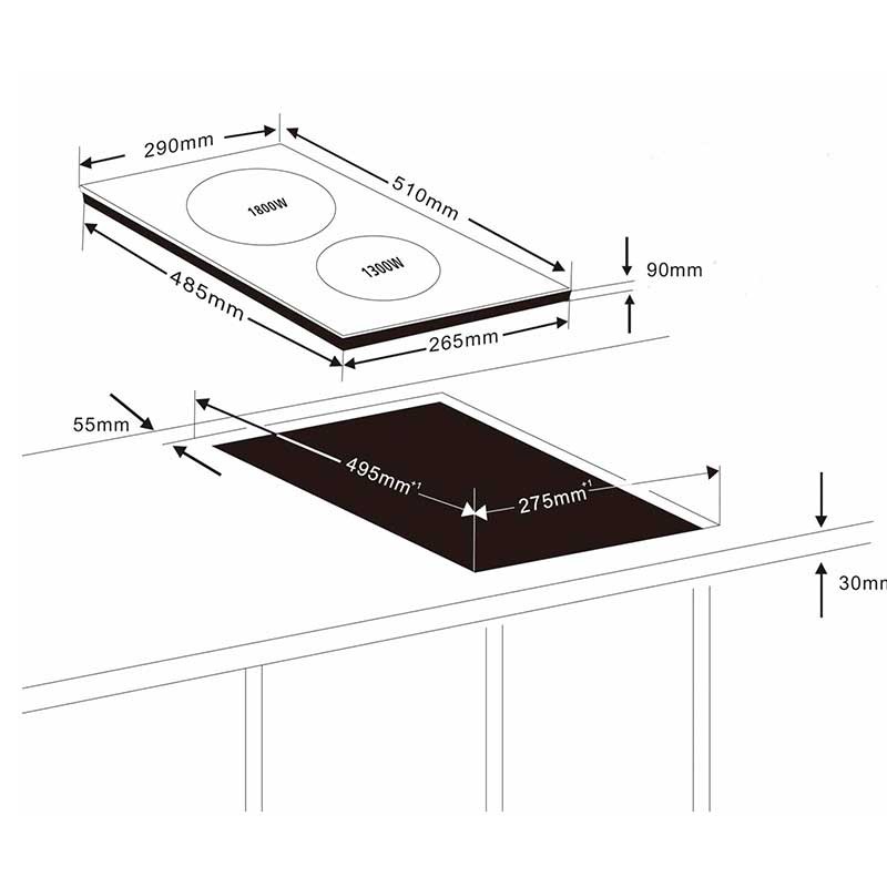 Placa de inducción portátil con 2 zonas de cocinado de 16 y 20 cm de diámetro respectivamente y 8 niveles de potencia con temporizador.