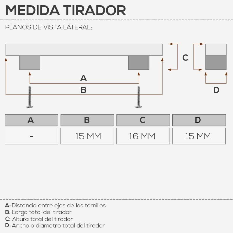 Pomo metálico de zamak acabado cromo mate modelo 3507 para muebles de cocina. Incluye los tornillos necesarios para su montaje.