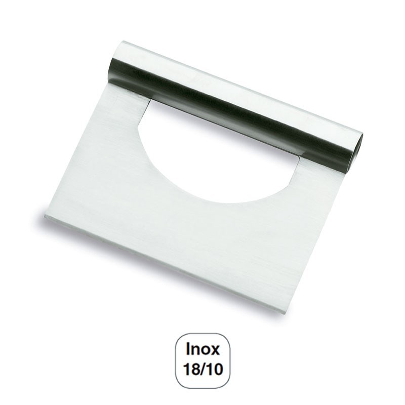 Rasqueta de acero inoxidable 18/10 con borde recto ideal para manipulación de masas de pan o de repostería. Tamaño: 15 x 9 cm.