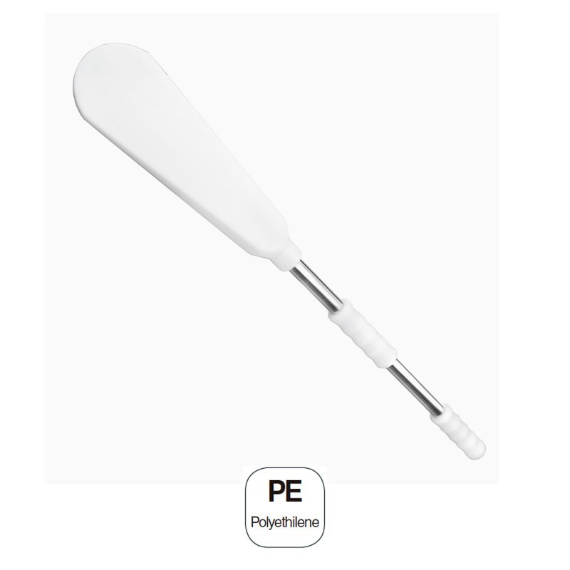 Pala profesional para cocina fabricada en polietileno blanco con mango de acero inoxidable de gran calidad que ofrece una excelente resistencia a la corrosión. Largo: 74 cm.