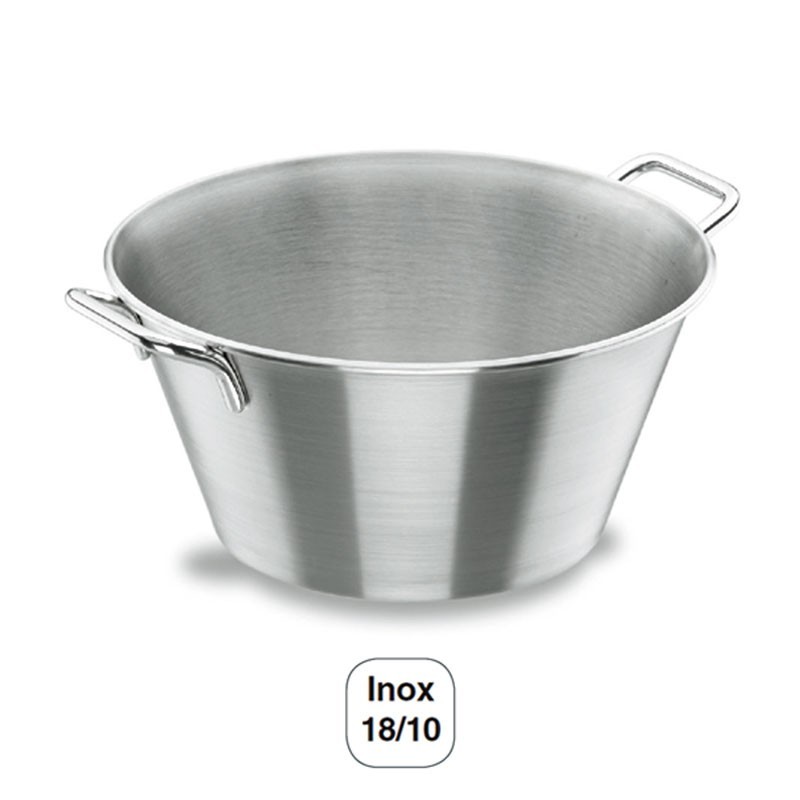Caldero cónico con asas para cocina fabricado en acero inoxidable 18/10 de alta calidad y resistencia a la corrosión. Disponible en varias medidas.