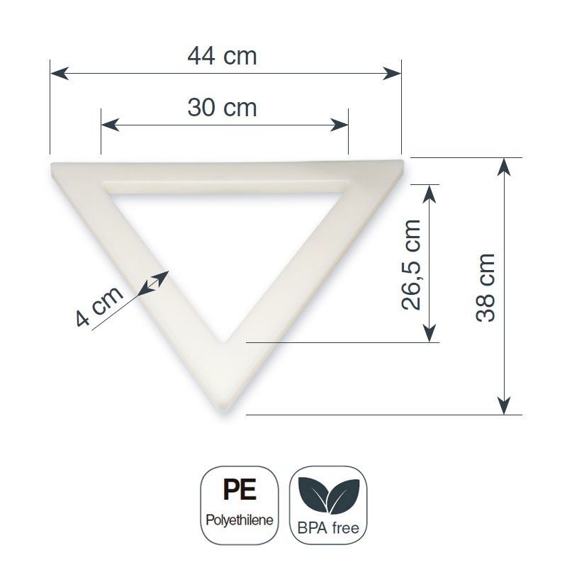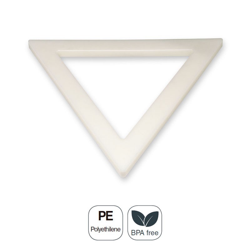 Triángulo para sostener coladores sobre cacerolas u ollas fabricado en polietileno blanco de la máxima calidad y ecológico libre de BPA. Altura: 2 cm.