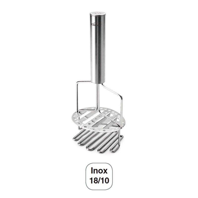 Prensador de patatas para cocina fabricado en acero inoxidable 18/10 de alta calidad que ofrece una excelente resistencia a la corrosión. Medidas: 10,5x8,5 cm Alto: 24 cm.