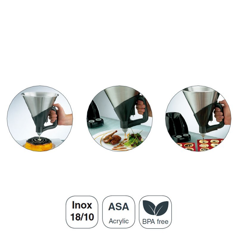 Cono de acero inoxidable 18/10, excelente resistencia a la corrosión, los ácidos alimentarios y sales con una capacidad de 2 L