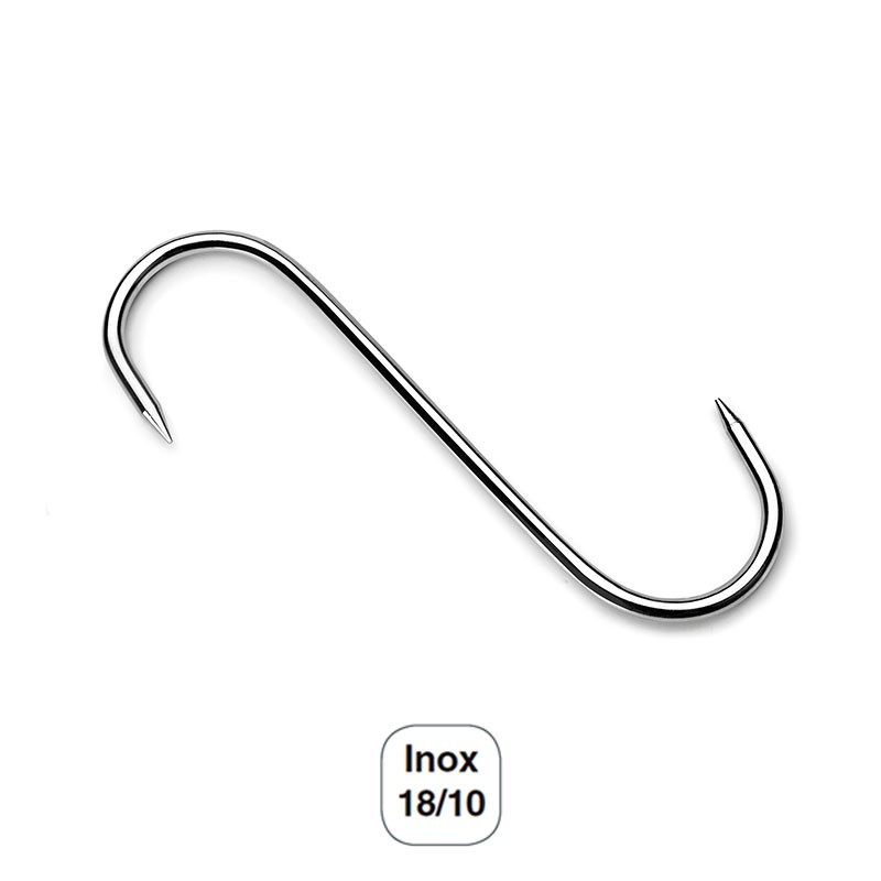 Set de 6 ganchos con doble punta para colgar carnes fabricados en acero inoxidable 18/10 de alta calidad y excelente resistencia a la corrosión. Disponible en 2 tanaños.