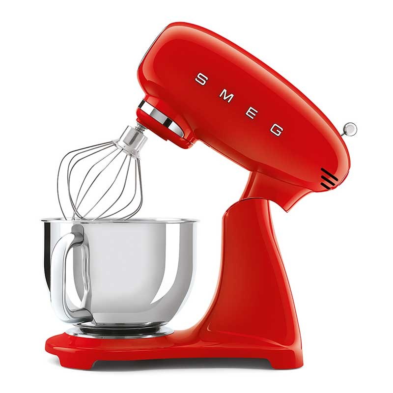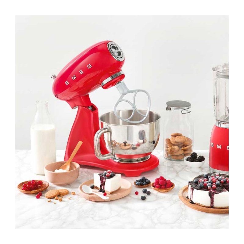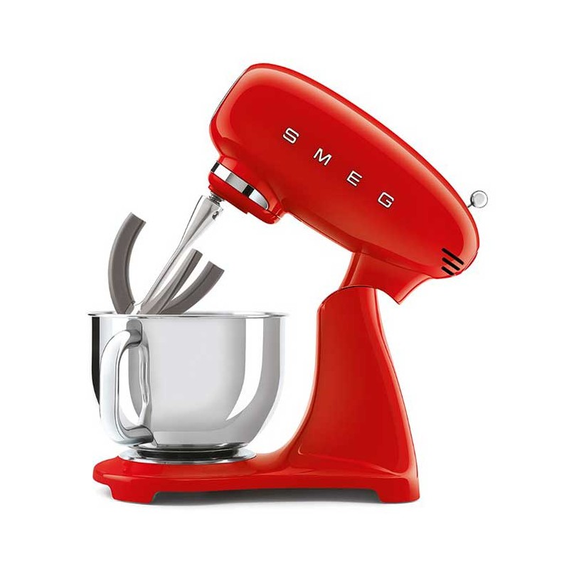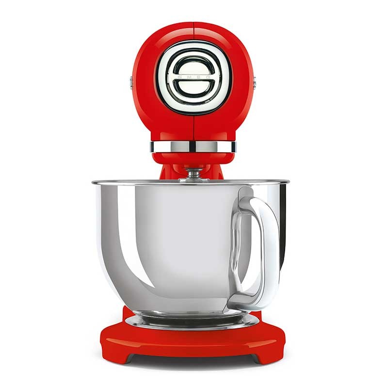 Batidora amasadora Smeg 50's Style Full Color acabado rojo brillo con cuerpo en aluminio fundido, 800 W de potencia y 10 velocidades.