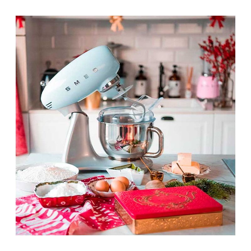 Anillo anti-salpicaduras compatible con el bol de acero inoxidable de los robots de cocina Smeg 50's Style modelo SMF02 y SMF03. Dimensiones: 359x174x224 mm.