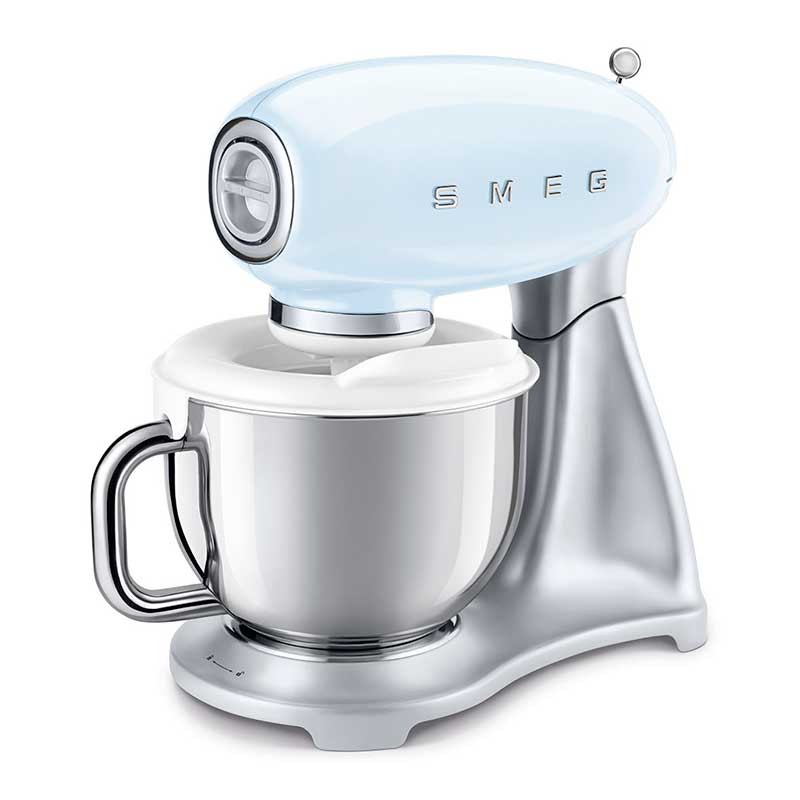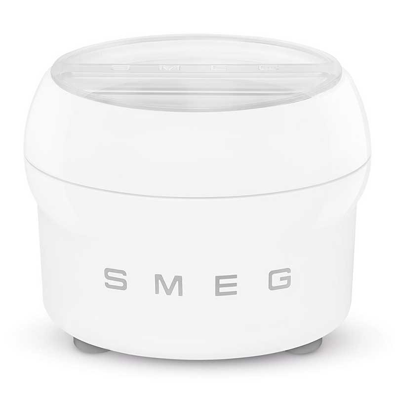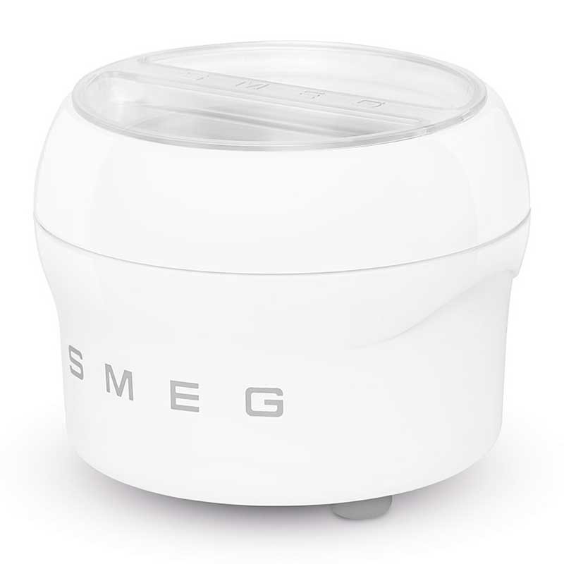 Todo el placer del helado en unos sencillos pasos; sorbetes, granizados o yogur helado. El accesorio para helado se adapta perfectamente al bol amasador de los robots de cocina Smeg 50's Style SMF02 y SMF03 (solo para el bol de acero inoxidable) y permite realizar el postre más deseado, especialmente en climas cálidos.