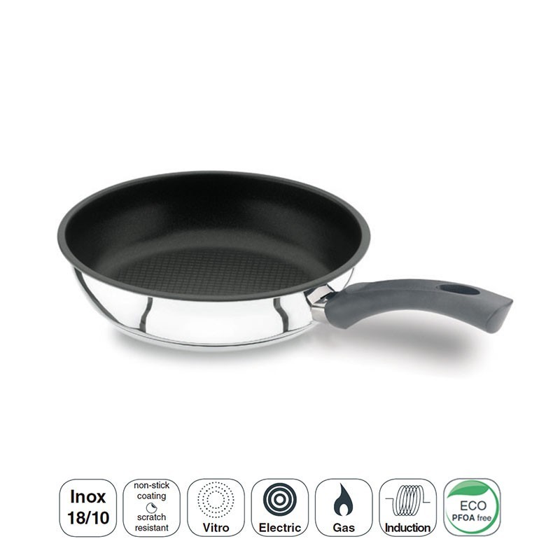 Sartén modelo Home fabricada en acero inoxidable 18/10 de alta calidad que ofrece una excelente resistencia a la corrosión y a los ácidos alimentarios y sales.