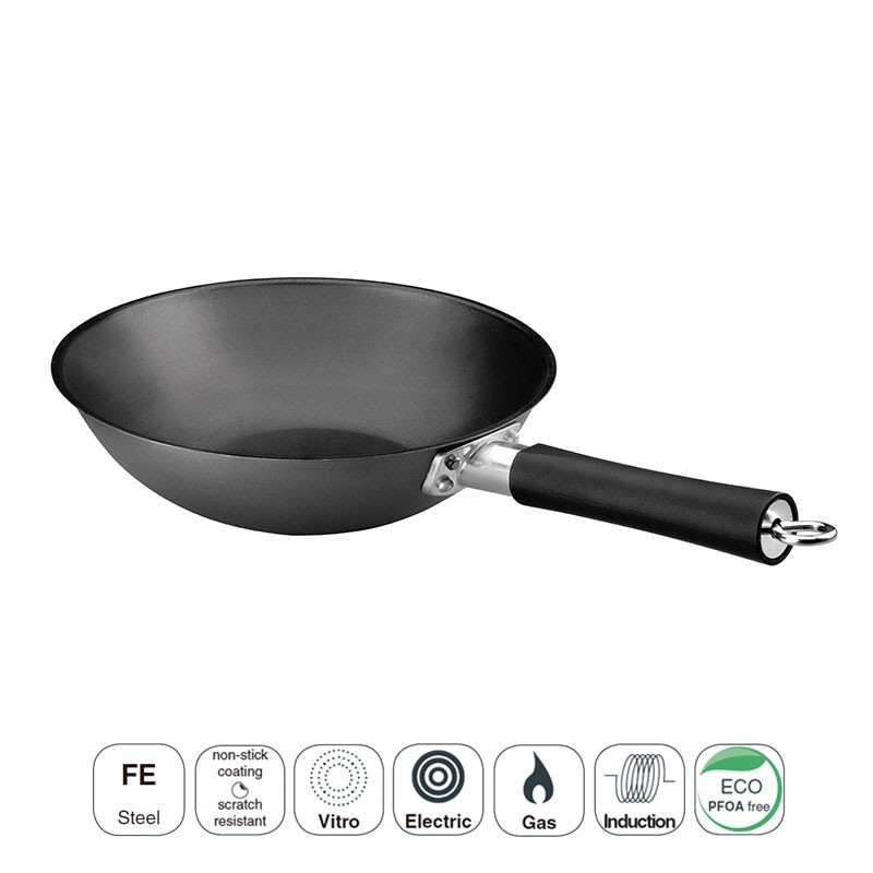 Wok modelo Ferrum fabricado en acero con recubrimiento (Bicapa) de gran calidad, antiarañazos y ecológico libre de PFOA.