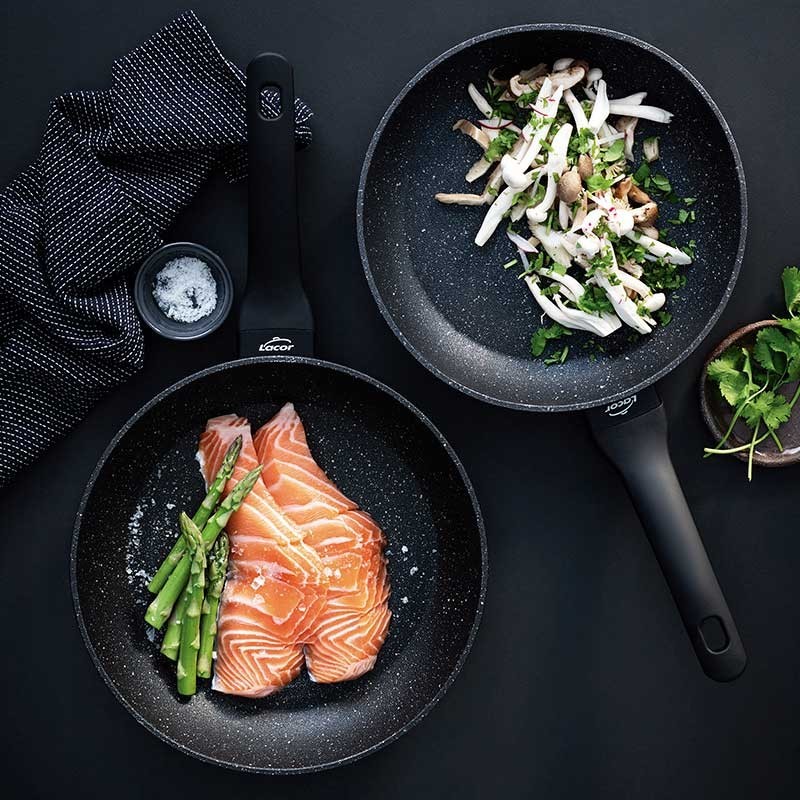 Sartén gama Java de Lacor fabricada en aluminio forjado con recubrimiento antiadherente reforzado anti-ralladuras y fondo full induction.