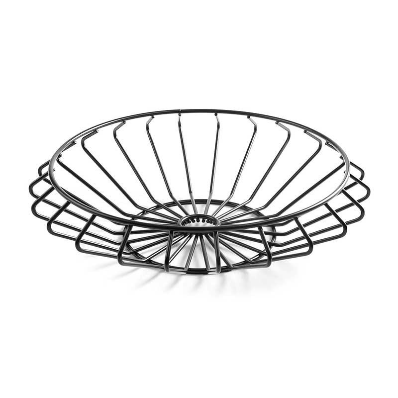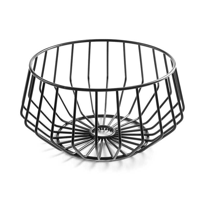 Frutero de diseño original y decorativo en alambre de acero resistente y duradero acabado en negro mate. Ideal para colocar frutas, pan, verduras, huevos, etc.