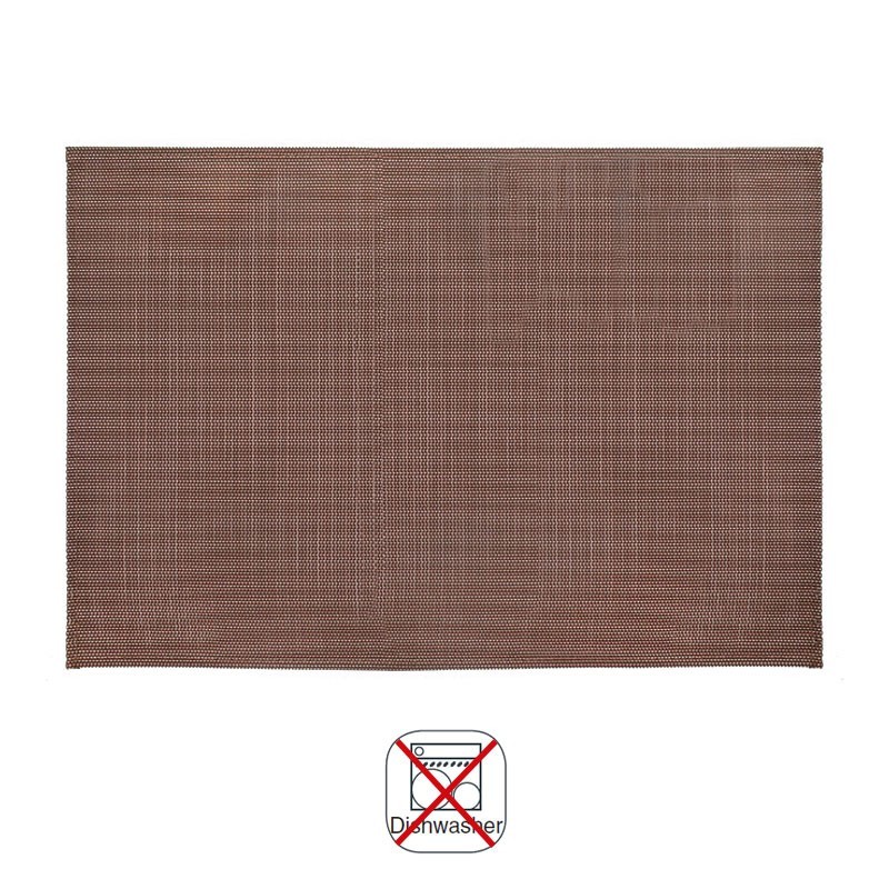 Mantel individual de 45x30 cm modelo Rinca fabricado con un 75% de PVC y un 25% de poliéster en color marrón.