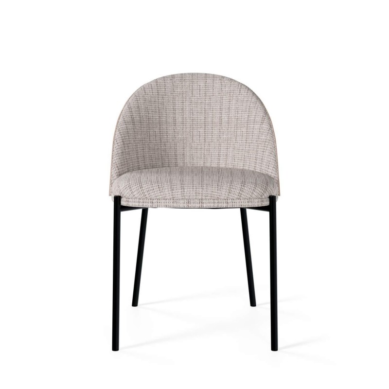 El tapizado textil del asiento y el respaldo, ambos acolchados, proporcionan una comodidad excepcional, invitando a disfrutar de largas sobremesas.