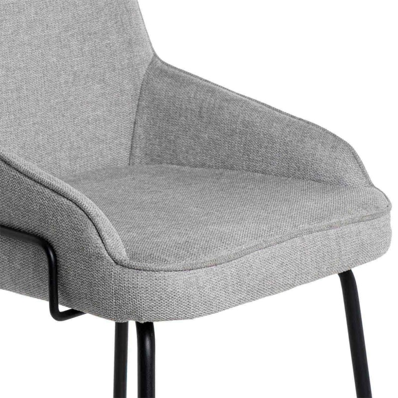 Como detalle de diseño, la barra metálica negra en la parte trasera del respaldo, al igual que sus patas, le confiere un toque sofisticado y moderno.
