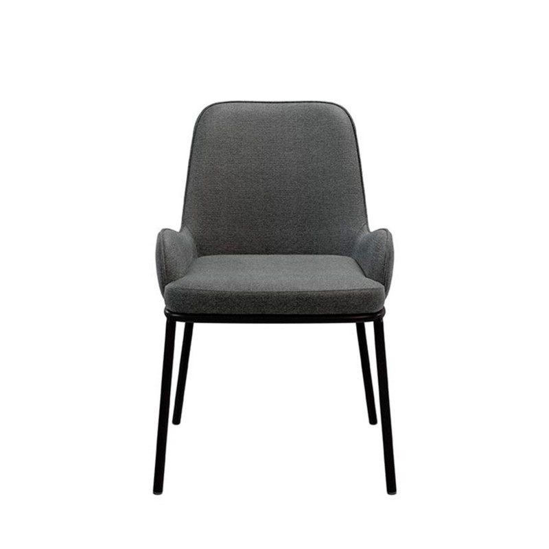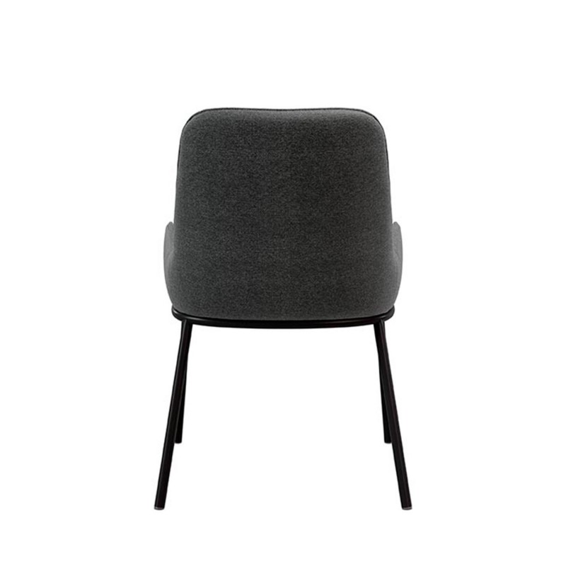 Las tapas metálicas negras crean un contraste elegante con el tono gris del tejido, haciendo de la silla LARISA una opción perfecta para quienes buscan una combinación de minimalismo y confort en su mobiliario.