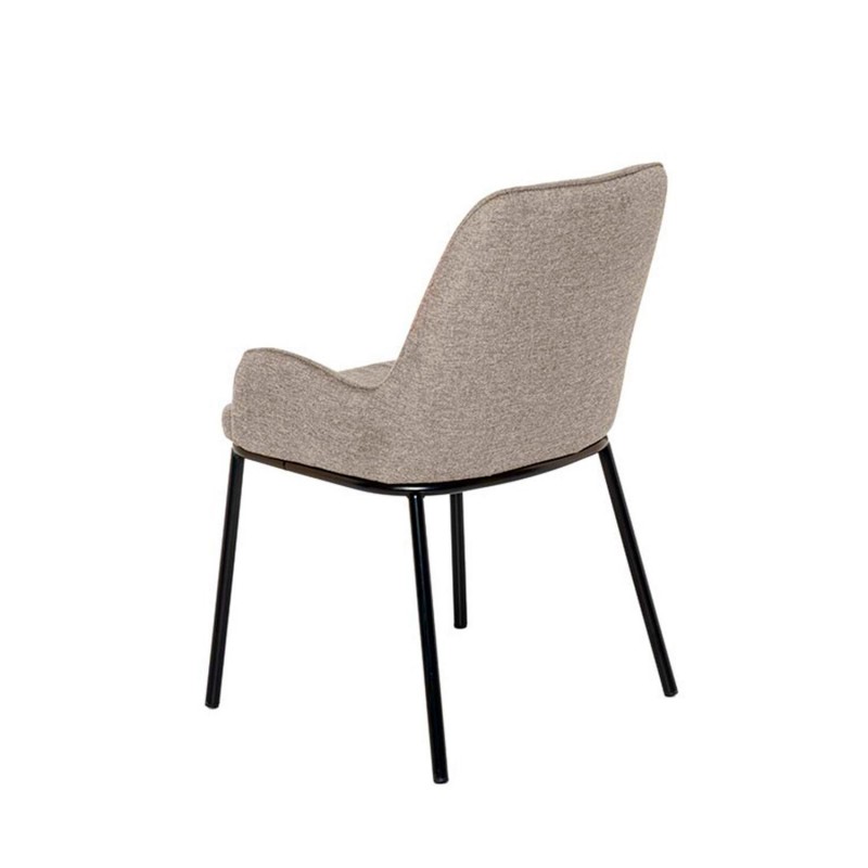 Las tapas metálicas negras crean un contraste elegante con el tono gris del tejido, haciendo de la silla LARISA una opción perfecta para quienes buscan una combinación de minimalismo y confort en su mobiliario.