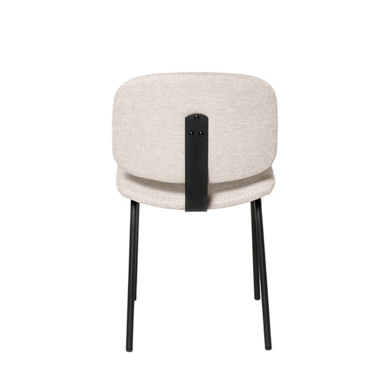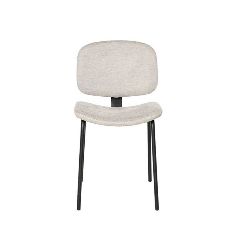 Silla WINONA: diseño minimalista, tela beige, costura en cruz. Ideal para interiores modernos. Dimensiones: 40x82x50 cm. Soporta 120 kg.