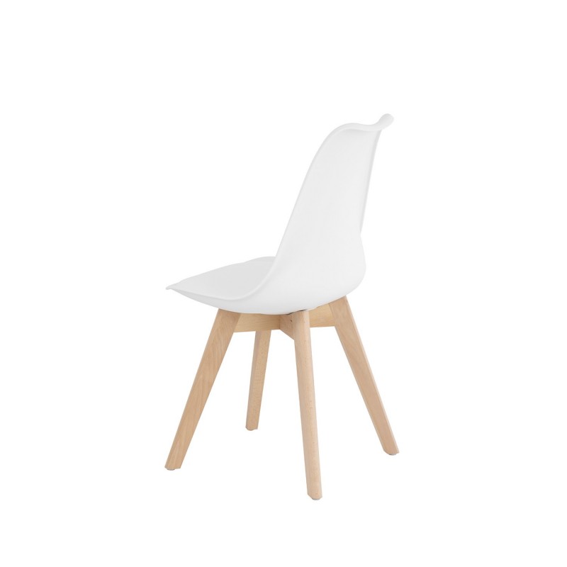 La silla KARINA combina estilo nórdico-moderno con comodidad ergonómica. Respaldo y asiento de polipropileno, patas de madera para estabilidad y elegancia.