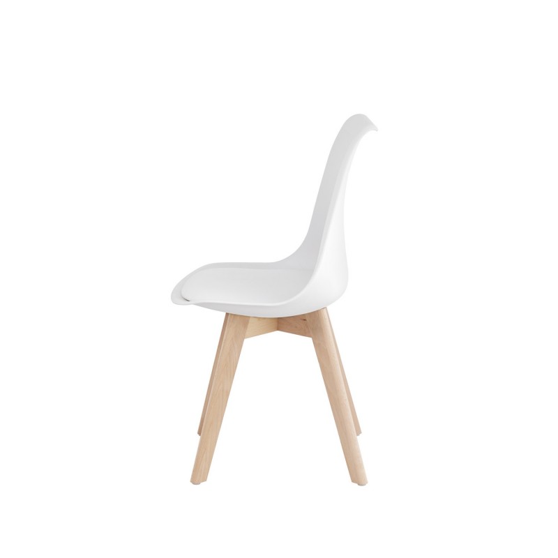 La silla KARINA destaca por su estilo nórdico-moderno, equilibrando simplicidad y sofisticación. El respaldo y asiento de polipropileno, ligeramente curvado, promueve una postura cómoda y ergonómica. Además, el asiento está acolchado con poliuretano para mayor confort.