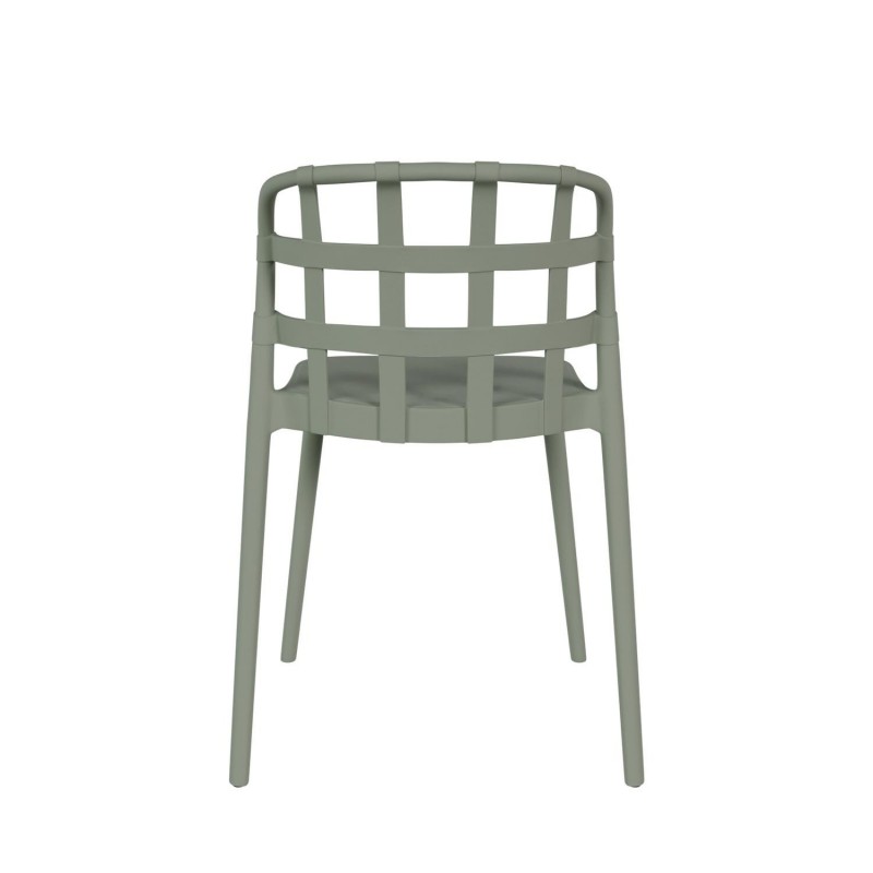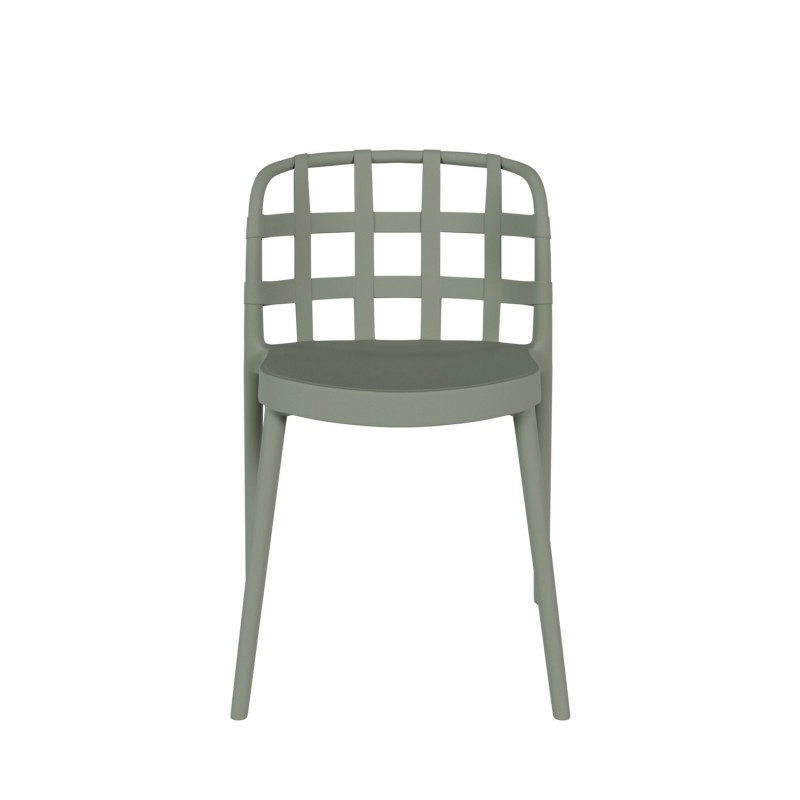 Este último, además, destaca por su distintivo patrón de rejilla de tiras anchas entrecruzadas, aportando un toque moderno y sofisticado. Fabricada completamente en polipropileno de alta calidad, esta silla no solo es duradera, sino que también es apilable, lo que facilita su almacenamiento y transporte.