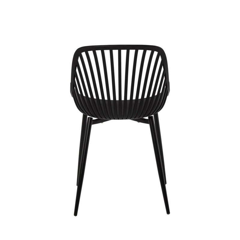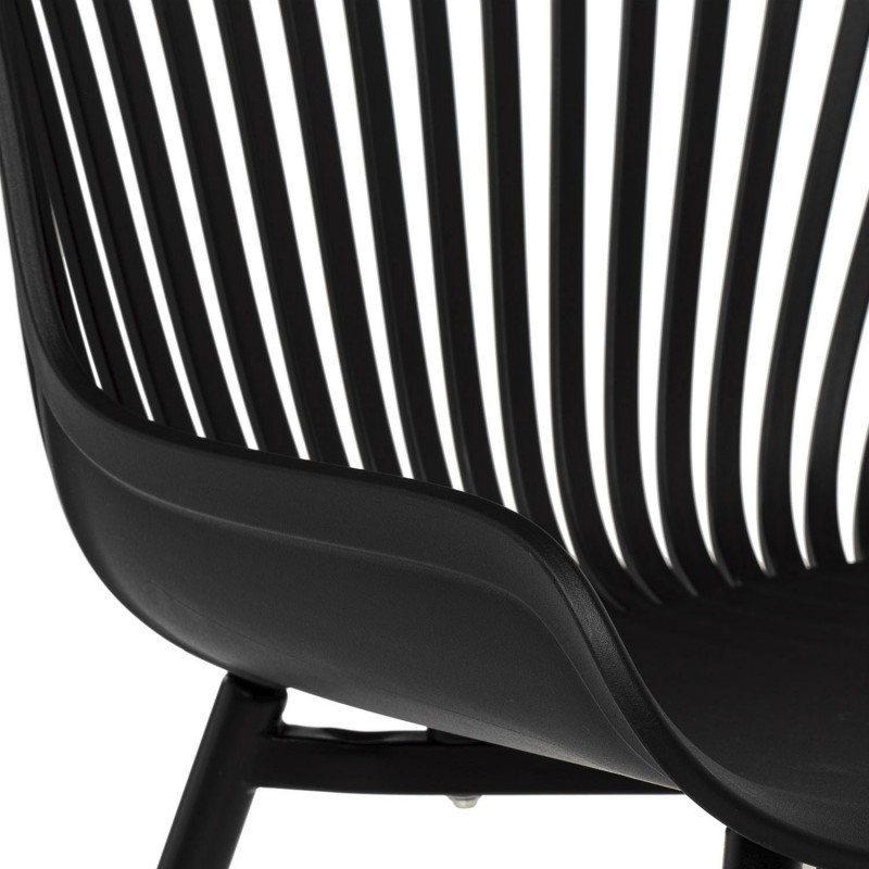 El respaldo, compuesto por barras delgadas, añade un toque distintivo y moderno, mientras que las estilizadas patas de metal refuerzan su aspecto sofisticado, haciendo de esta silla una elección ideal para cualquier espacio contemporáneo.