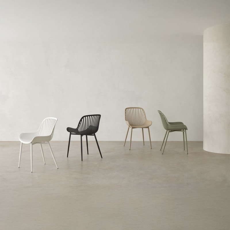 La silla RANIA destaca por su elegante estructura de líneas curvas que integran armoniosamente el respaldo, el asiento y los brazos en una sola pieza, proporcionando una experiencia de confort excepcional gracias a su diseño ergonómico.
