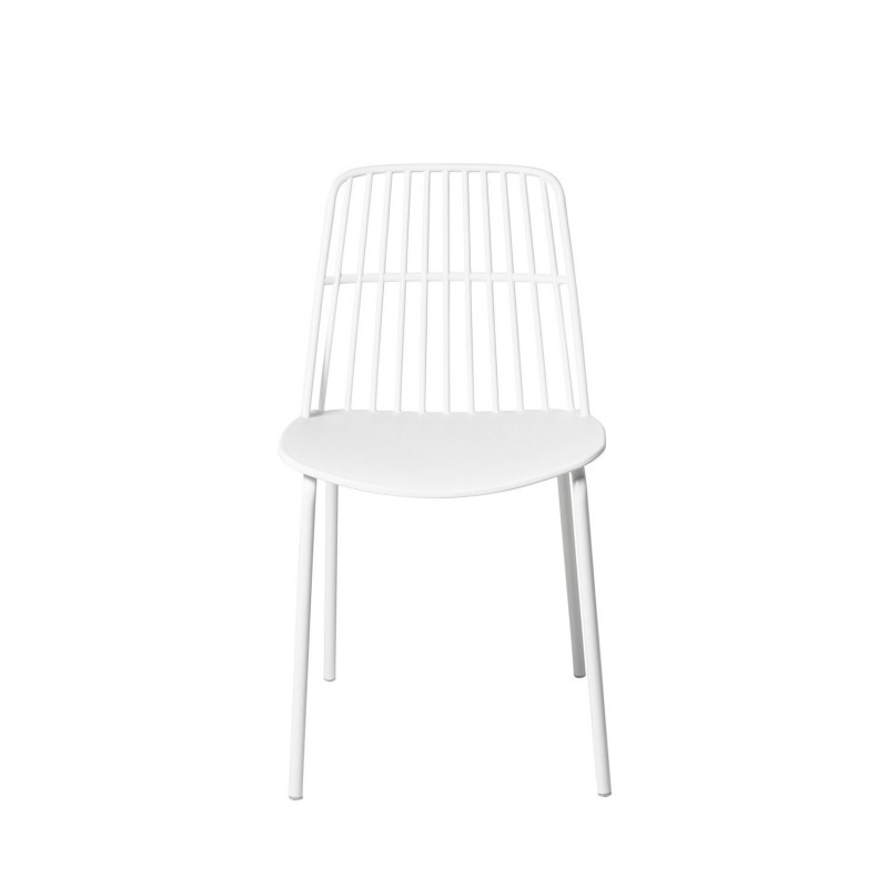 Silla NERINA con asiento y respaldo de polipropileno. Diseño ligero con barras delgadas en el respaldo y patas de metal para un estilo contemporáneo.