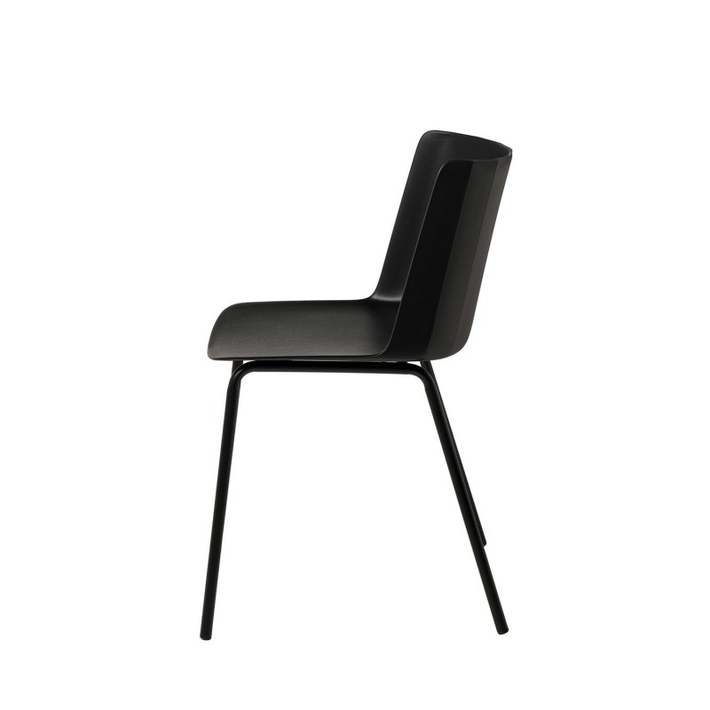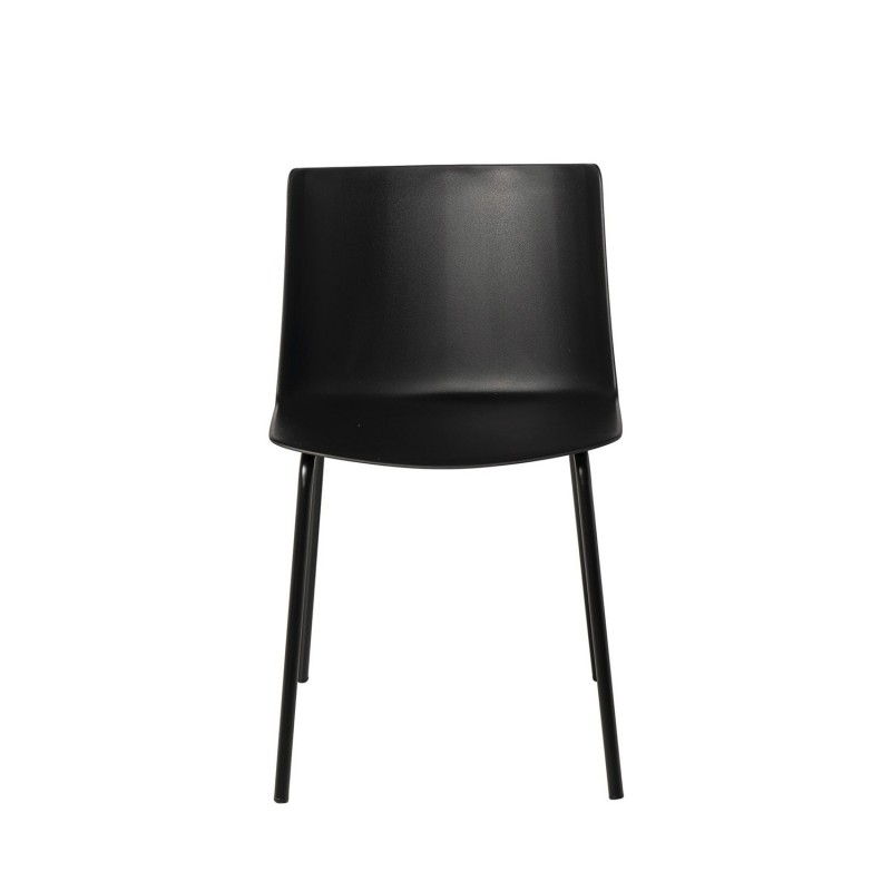 La silla CADY negro destaca por su diseño sencillo y elegante, ideal para diferentes espacios. El respaldo tiene un ligero relieve en la parte trasera que le ofrece un punto de distinción a nivel visual, complementando a la perfección con las líneas rectas y suaves.