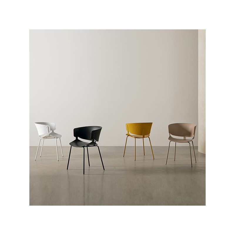 La silla TAYLOR está fabricada en polipropileno y cuenta con patas metálicas, que le otorgan un toque elegante.