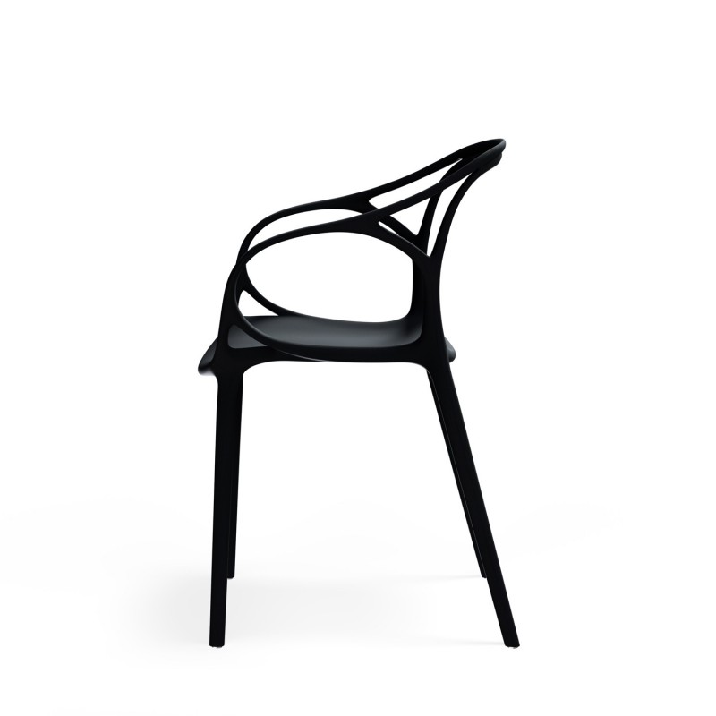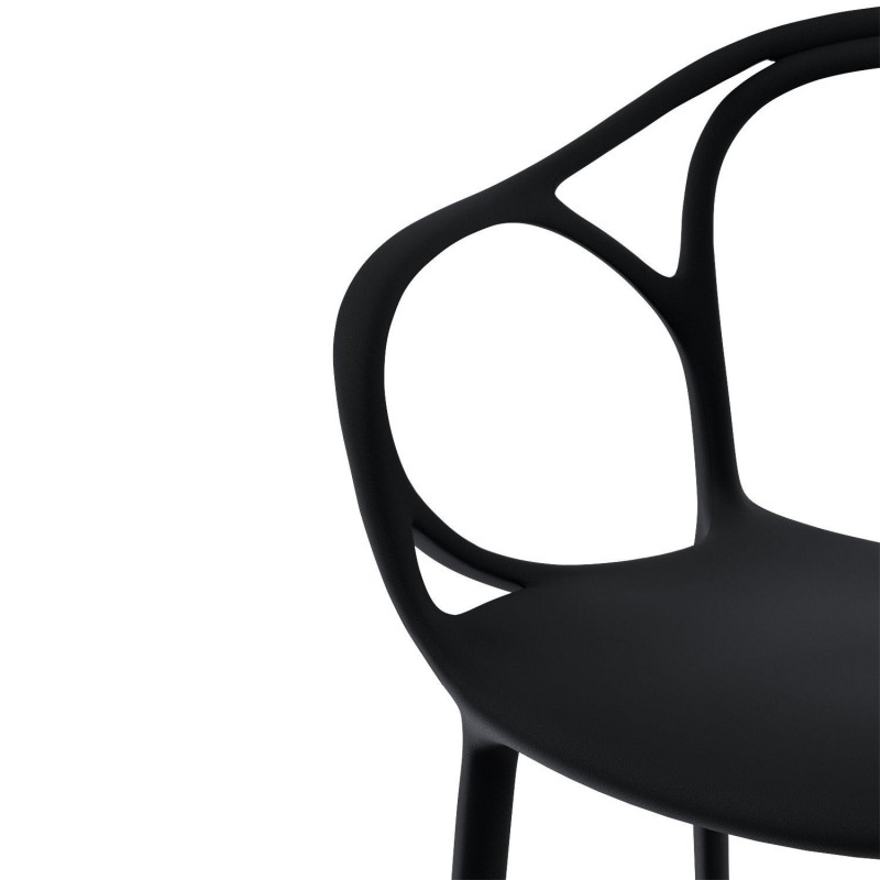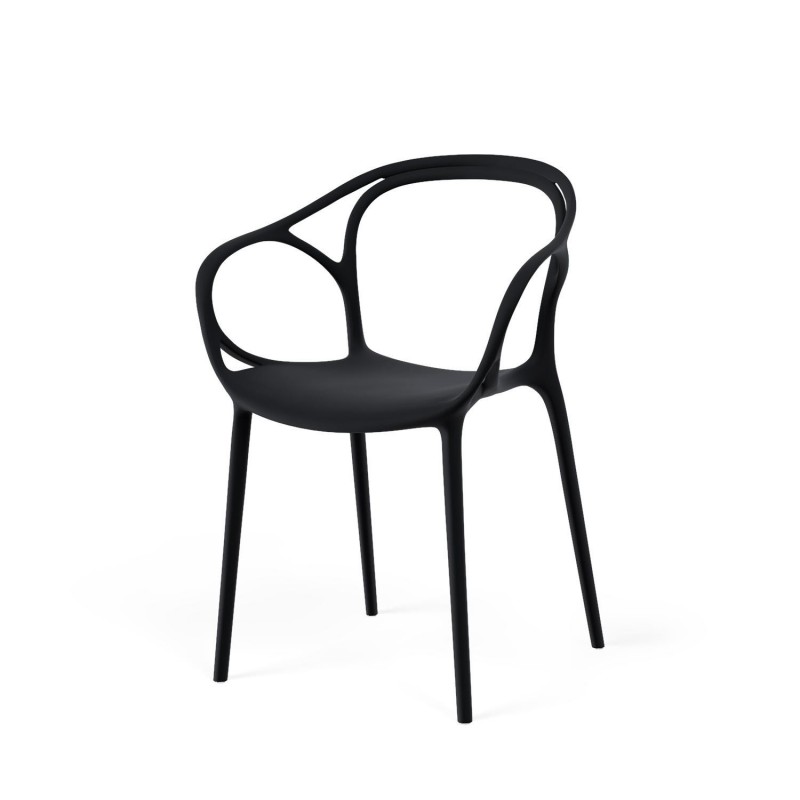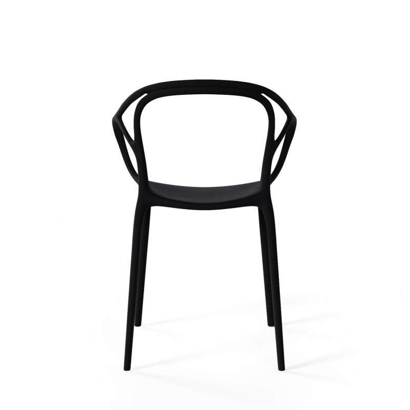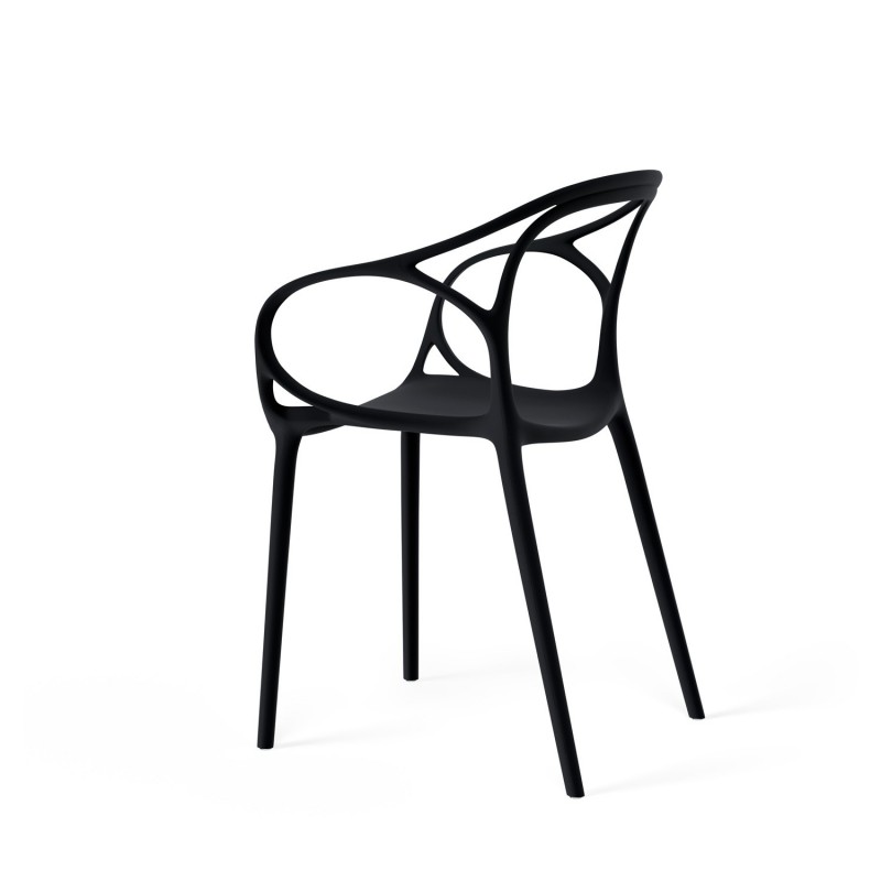 La silla EILIN en color negro está fabricada en polipropileno, lo que la hace resistente y duradera. Su diseño minimalista y elegante la convierte en una pieza versátil que se adapta a cualquier espacio, ya sea en interiores o exteriores.