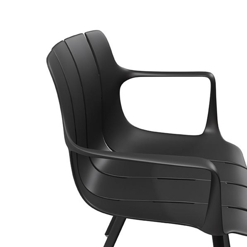 La silla YAMAL está formada por un asiento, respaldo y brazos moldeados en una única pieza de polipropileno, ofreciendo un soporte ergonómico que se adapta a la perfección al cuerpo.