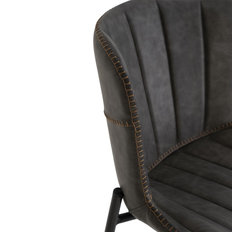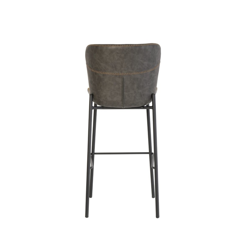 Este elegante taburete alto combina lo mejor del diseño moderno y clásico. Su asiento, tapizado en polipiel gris con un efecto que imita la piel auténtica, presenta un atractivo ribeteado, añadiendo textura y sofisticación.