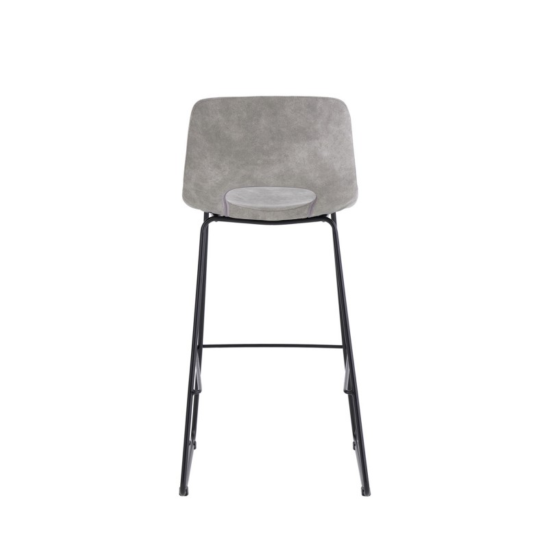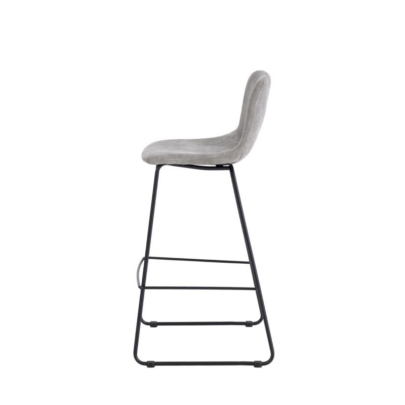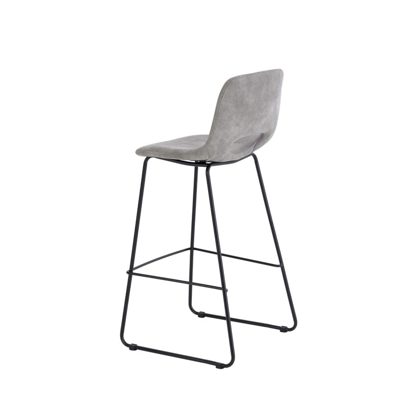 Taburete alto ROWAN gris claro, ideal para espacios contemporáneos. Asiento tapizado en polipiel gris, respaldo ergonómico y patas de metal modernas.
