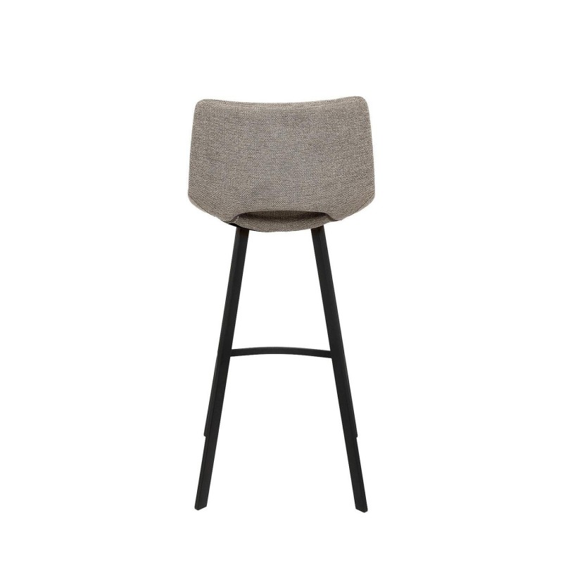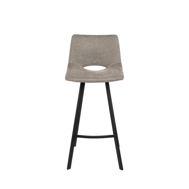 Taburete alto ASTON taupe, ideal para interiores contemporáneos. Estructura de metal, tapizado en tela taupe y reposapiés integrado para mayor comodidad.