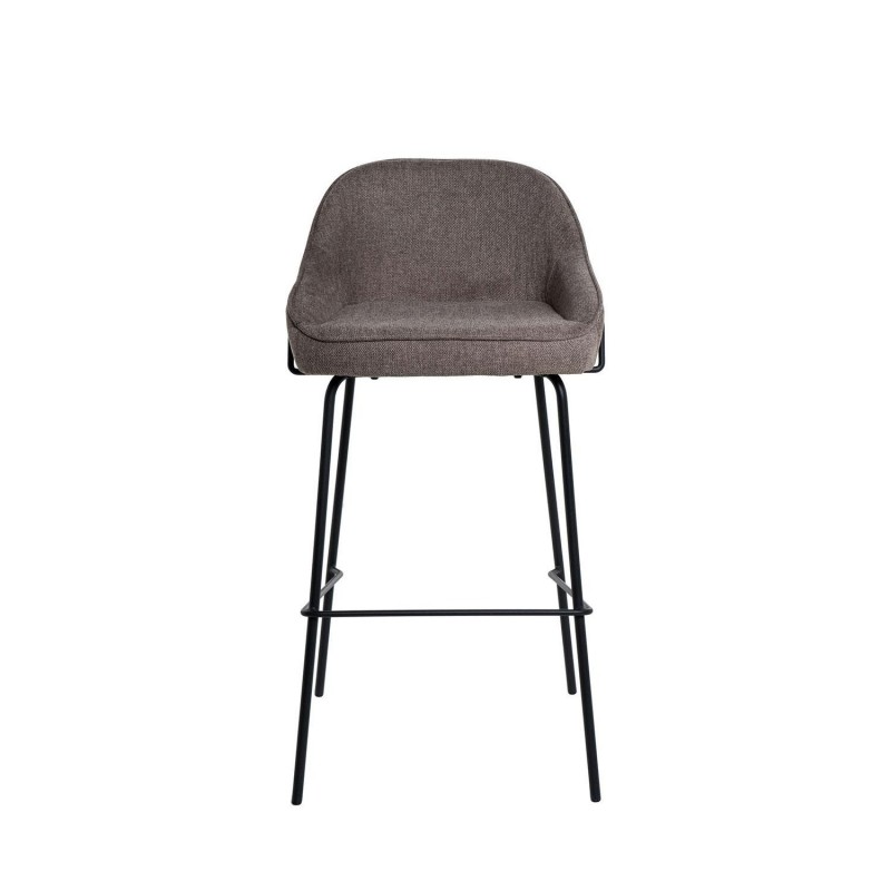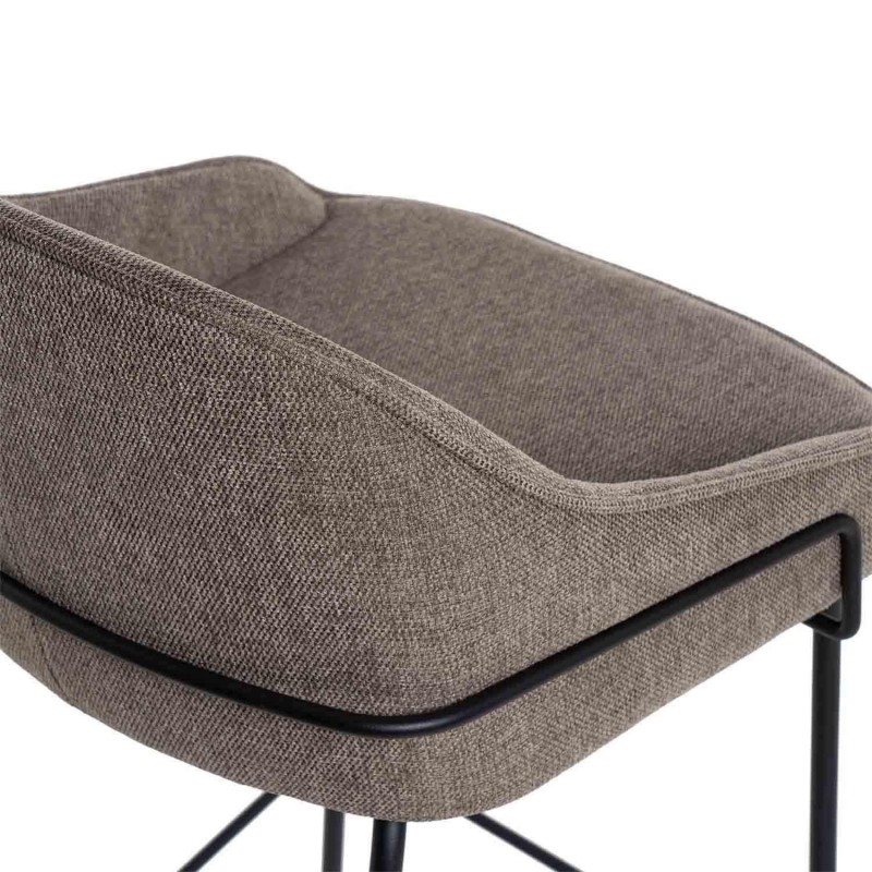 Taburete alto LOUIS taupe, ideal para cocinas o bares. Asiento tapizado en tela taupe, estructura de metal moderna y resistente. Respaldo integrado para mayor comodidad.